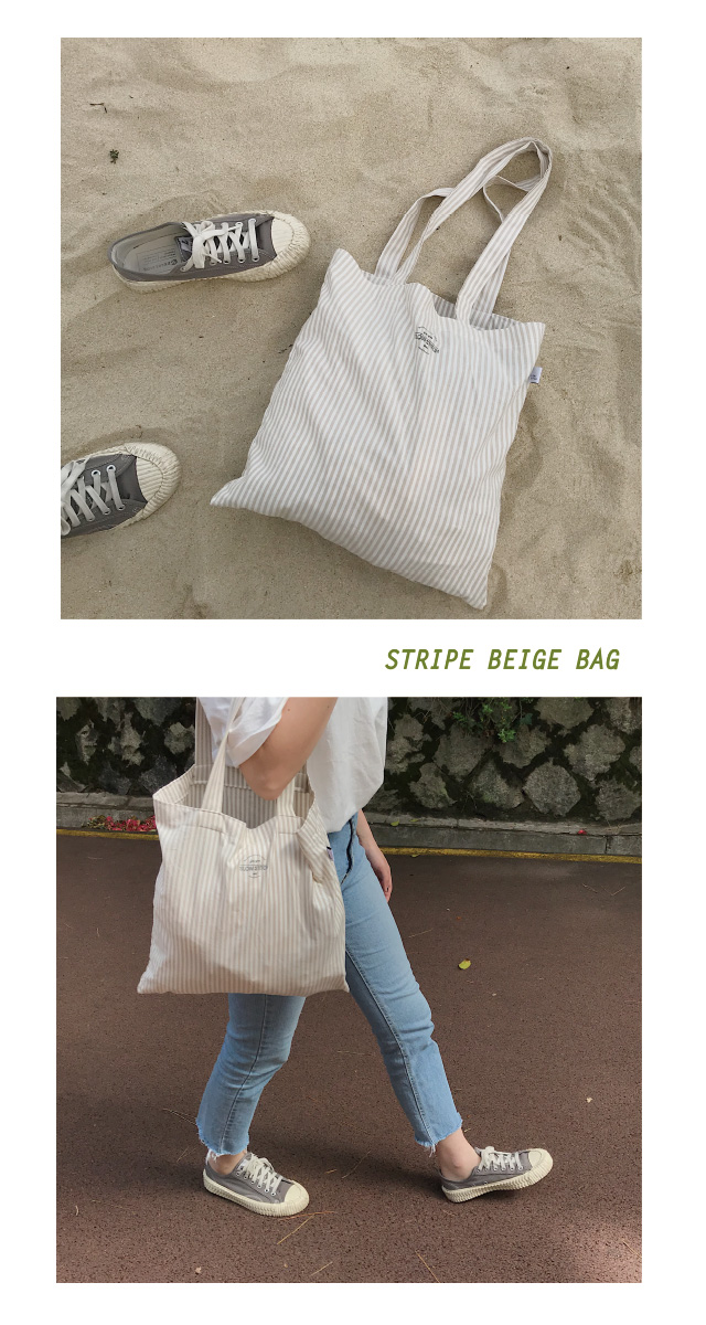스트라이프의 베이지색 원단으로 제작한 에코백입니다 !