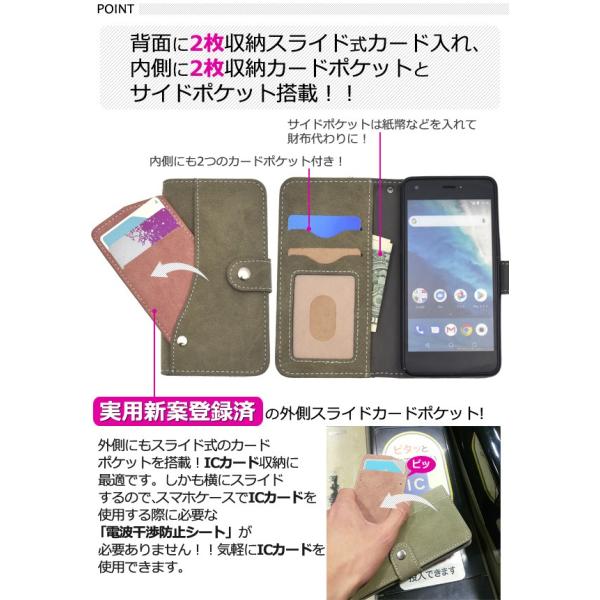 | 商品の説明 | 背面に2枚収納スライド式カード入れ、内側に2枚収納カードポケットとサイドポケット搭載した、 選べるスマホケース Android One S4 ケース/DIGNO J対応 スライドカードポケットソフトレザーケース 対応機種 Android One S4 ケース/DIGNO J 背面にもスライド式のカードポケットを搭載! (実用新案登録済) ICカード収納に最適です。 しかも横にスライドするので、スマホケースでICカードを使用する際に必要な 「電波干渉防止シート」が必要ありません! 気軽にICカードを使用できます。 滑らかな手触りソフトレザーデザイン。 持つ度に手にしっくりと馴染みます。 背面を折り返すとスタンドとして使用できるので、動画視聴に便利です。 落下防止に便利なストラップホール付きです。 横開きタイプなので、手帳のように使うことができます。 しっかりと固定できるスナップボタン式を採用! マグネットタイプではないので クレジットカードなどの磁気カードも収納できます。 ※スマートフォンは付属しません。 ※ライセンス商品ではありません。 |