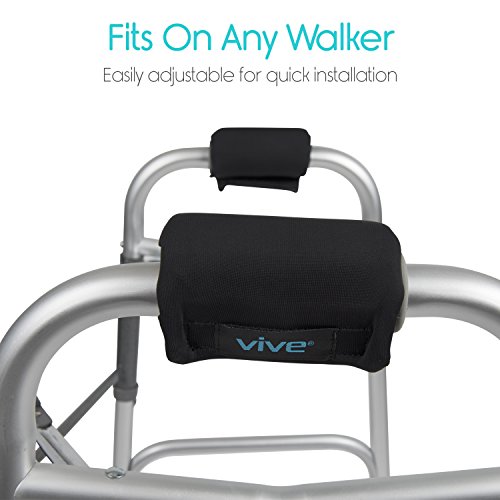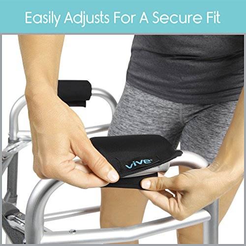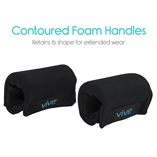Walker Padded Handles by Vive Reduce hand and wrist soreness and irritation with the Vive padded walker hand grips. Quickly installing on any standard walker, the hand grips are padded with a contoured foam to relieve painful pressure points and reduce hand and wrist fatigue. Durably constructed with a breathable, moisture-wicking material, the handles stay cool and dry to provide a comfortable and secure grip every time. Comfortably Padded Hand Grips: Reducing hand and wrist pain and fatigue, the walker hand grips are padded with a contoured foam for a comfortable and secure grip. Generously padded, the walker hand grips relieve soreness and irritation caused by standard walker handles. The latex-free padded walker handles easily install on any walker with a simple hook and loop closure, providing a stable, nonslip surface for your hands to rest on a walker or other mobility device. Fits on Any Walker: Simple hook and loop closure allows the padded walker hand grips to be quickly installed on any walker without slipping or bunching. Contoured Foam Padding: Contoured foam padding evenly distributes the pressure placed on each hand while using a walker and retains its shape for extensive usability. The latex-free walker handles reduce hand pain and soreness and eliminates skin irritation. Breathable, Moisture-Wicking Materials: Breathable, moisture-wicking materials allow your hands to stay comfortably cool and dry. The walker hand grips are also washable for added convenience. What's Included: - One pair of Vive walker handles