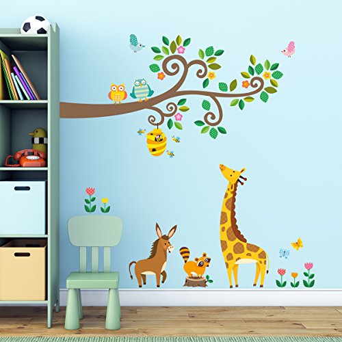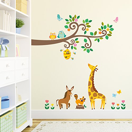 -. Title : Decowall, DW-1512,Scroll Branches and Animals peel & stick Nursery wall decals stickers
