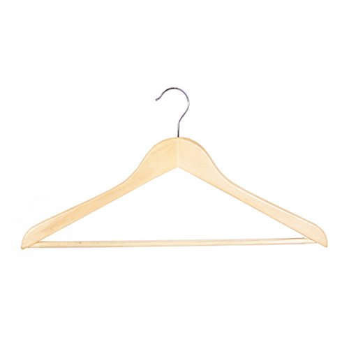 -. Feature : Durable wood structure. / Hang suits and pants on one hanger. / Ribbed bar prevents slipping. / Wide shoulders. / Size: 17.5 x .5 x 9.5.