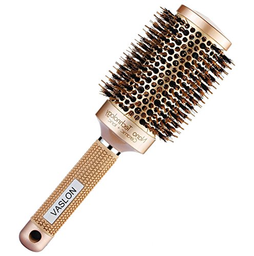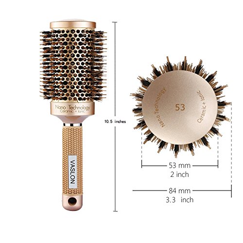 VASLON Professional Salon Round Barrel Hair Brush with Boar Bristle For Blow Drying, Curling & Straightening, Nano Thermal Ceramic & Ionic Brush(2 inch)