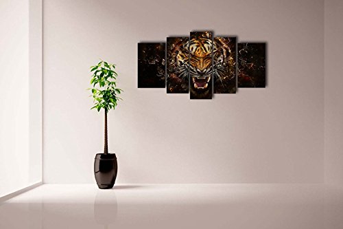-. Title : 5 Pieces Home Decoration Fierce Colorful Tiger Roaring Howling Office P.R.Int Wall Artwork Painting Pictures on Canvas Framed And Ready To Hang by uLinked Art