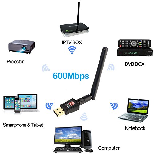 Ranphykx AC 600Mbps Wifi Adapter, Dual Band USB Wifi dongle with Antenna, 802.11n/g/b Network Lan Card For Windows 10/8.1/7/XP/Vista Mac OS X 10.4-10.11