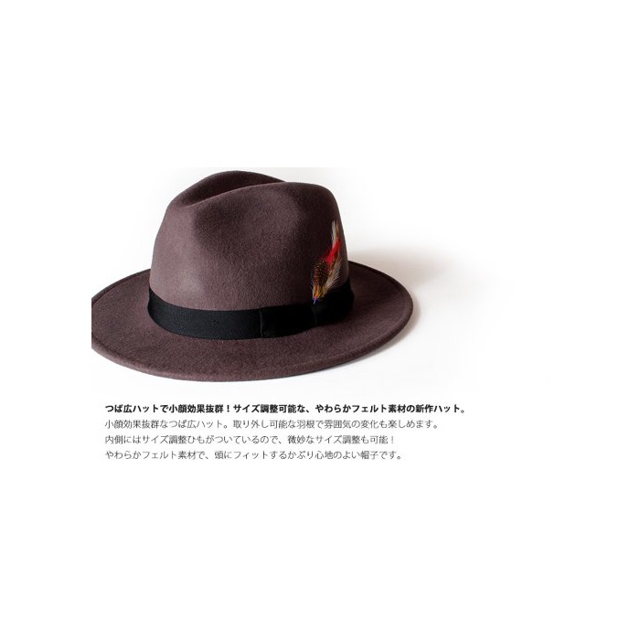 원본상품명: (Black)ANAGRAM アナグラム つば帽子 ウルフェルトハット 中折れハット メンズ レディス 羽根付き帽子 F57cm~59cm