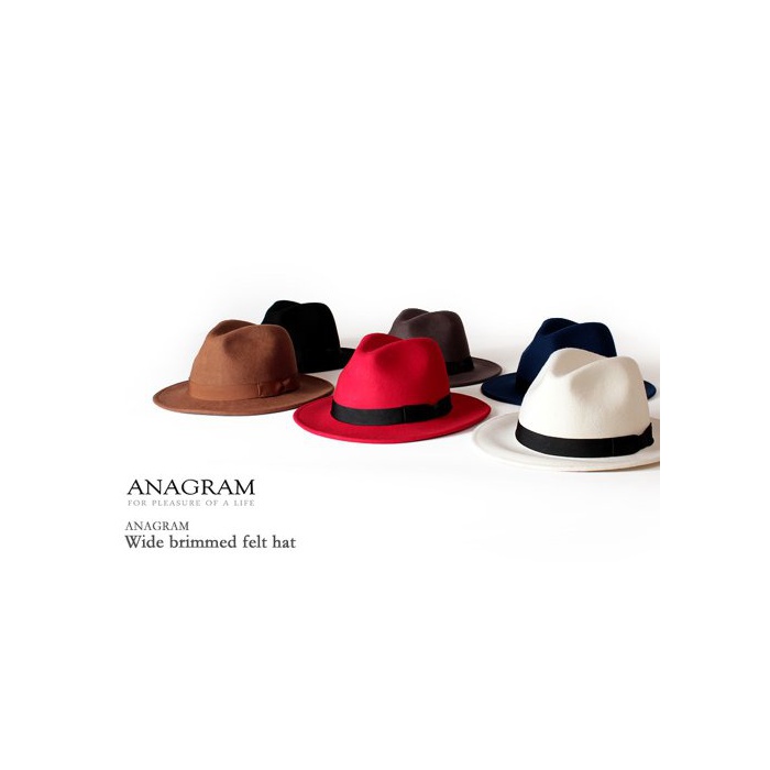 ANAGRAM(애너그램) (Black)ANAGRAM 애너그램 날밑광 모자 울 펠트 (햇)하트 중 부러짐 (햇)하트 맨즈 레이디스 날개 부착 모자 F57cm~59cm