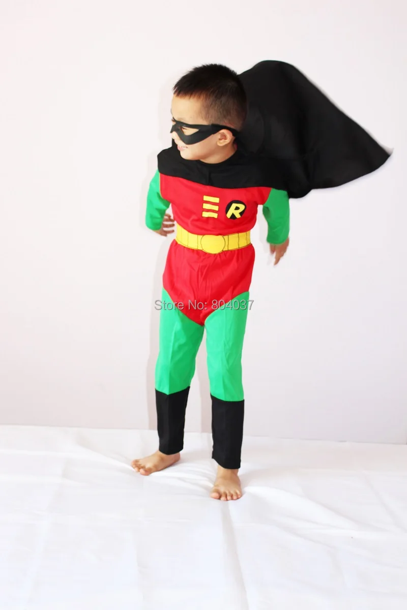 Children Halloween Costume,3-7 Ages Kid Party Cosplay,Boy Role-Playing Robin Clothing,Long Sleeve T Shirt