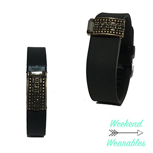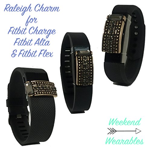 -. Title : Fitbit Alta, Fitbit Charge, Fitbit Charge HR, Fitbit Flex, Jawbone Up Garmin Vivofit Jewelry Charm to Accessorize Your Fitness Tracker - Wireless Activity Bracelet Sport Wristband - Vintage Bronze Gold Metal Rhinestone Stone Print - Raleigh Charm Accessory