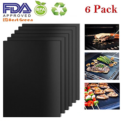 BestGreen BBQ Grill Mats and Bake Mats (6pcs) - 100% Non-stick FDA-Approved, PFOA Free, Reusable and Easy to Clean -Black grill mat (Black)