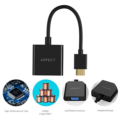 AIFFECT HDMI to VGA Adapter, Portable HDMI to VGA Video Converter 1080P - Black