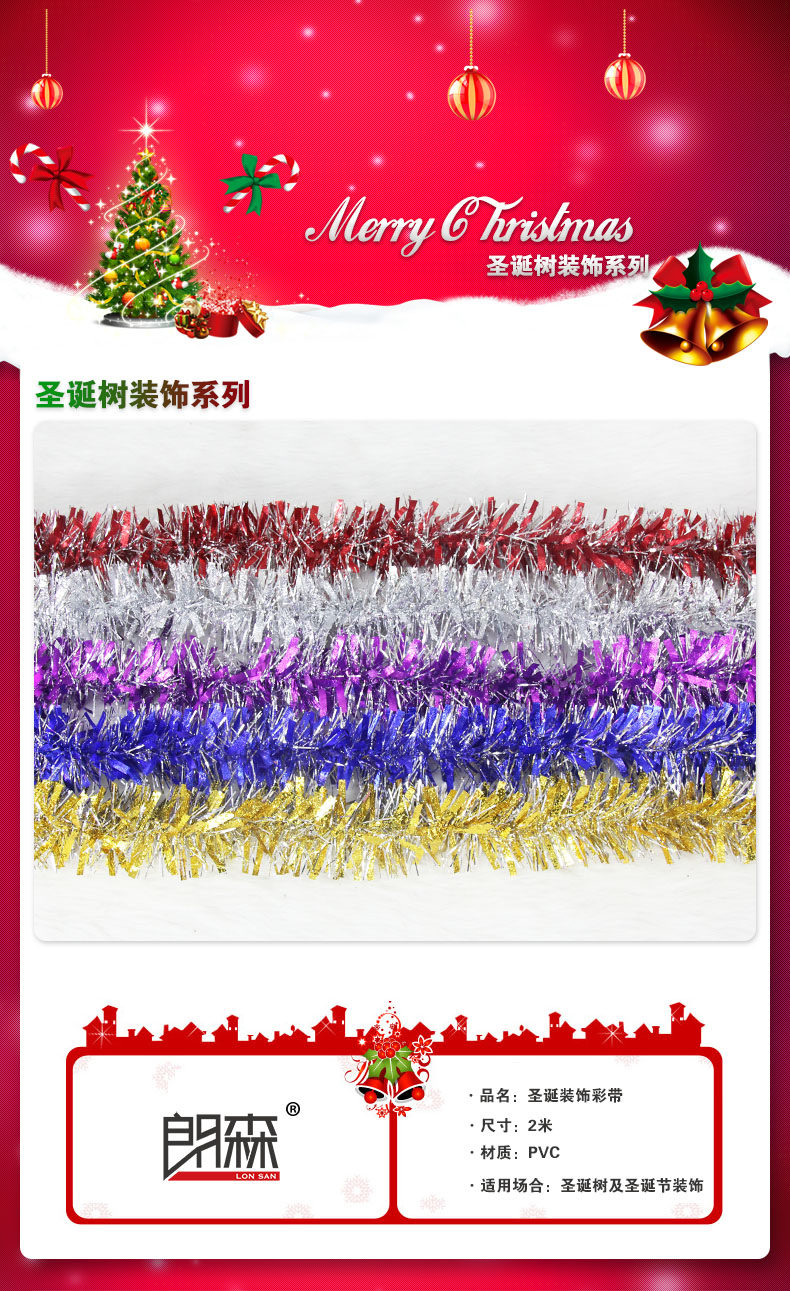 郎森圣诞节毛毛条拉花彩带晚会庆典party装饰圣诞树配饰配件彩条