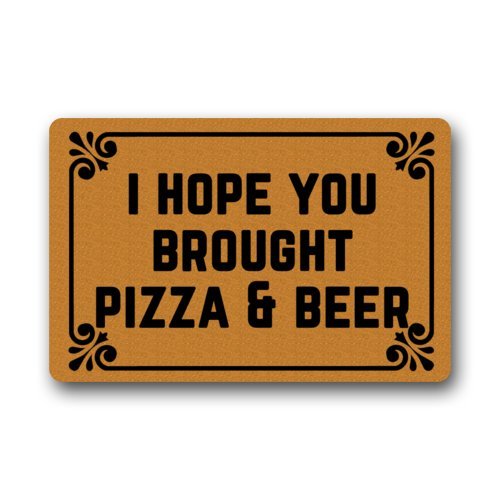-. Title : Funny Doormats - I Hope You Brought Pizza & Beer Durable Machine-washable Indoor/outdoor Door Mat 23.6"(L) x 15.7"(W) Inch