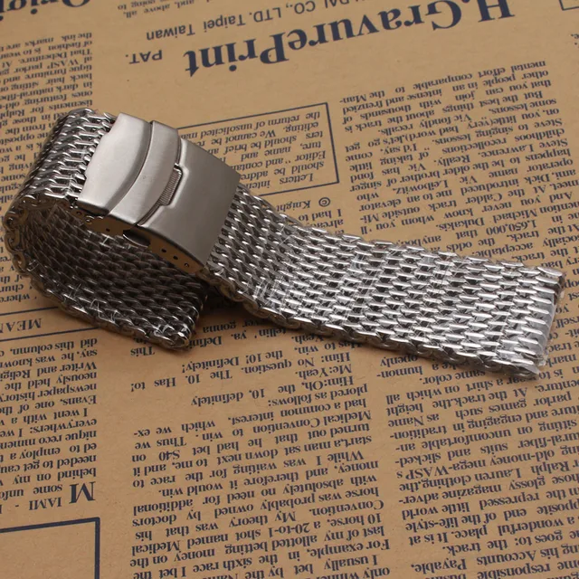 | [해외]느슨한 스테인레스 스틸 실버 shark 메쉬 손목 팔찌 특별 엔드 안전 버클 18 미리메터 20 미리메터 22 미리메터 24 미리메터 프로모션 남성 스트랩 |