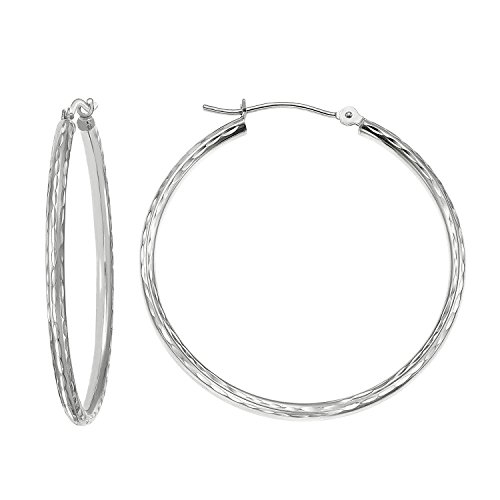 With full-cut cut pattern design, this pair of hoop earrings are ready to accent your style. Made of 14k gold, these earrings circle around and are clasped by saddle backs.