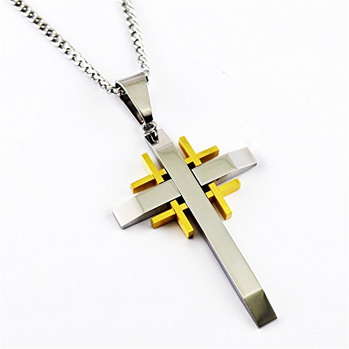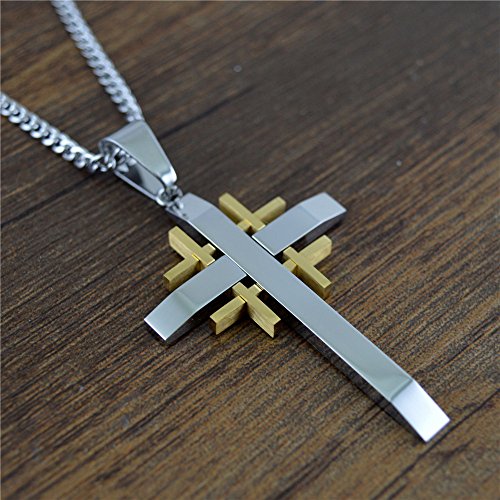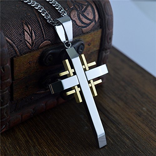 -. Feature : Pendant Size: 30mm*50mm, Sturdy and Strong as Men' Daily Jewelry and Gift for Your Important One. Cool Masculine 3 Layer Two tone Cross Pendant, Special and Vintage for Men and Boys. / Built of Quality Stainless Steel, Solid and Durable; Hypoallergenic Material, Free of Lead and Nickel.High Polished Surface, Smooth and Comfortable to Wear.Excellent Electroplated Workmanship, Lasting Color Retention. / The Quantum Advantage: Join the 1 million+ customers powered by our fashion jewelry style, Share our 20 plus years experience in the Jewelry business / Trade Mark Protection: Quantum is a registered brand with the US Patent and Trademark Office. MAKE SURE to only buy from Quantumdirect , the manufacturer. / What You Get: FREE GIFT with each order- special goodies for your jewelry needs. Our 60-day satisfaction guarantee and friendly customer service, No questions will be asked if you are not completely satisfied with the product and want to return it.