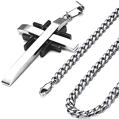 -. Title : Cross Necklace, Quantum 5mm Stainless Steel Pendant Curb Chain for Men Women