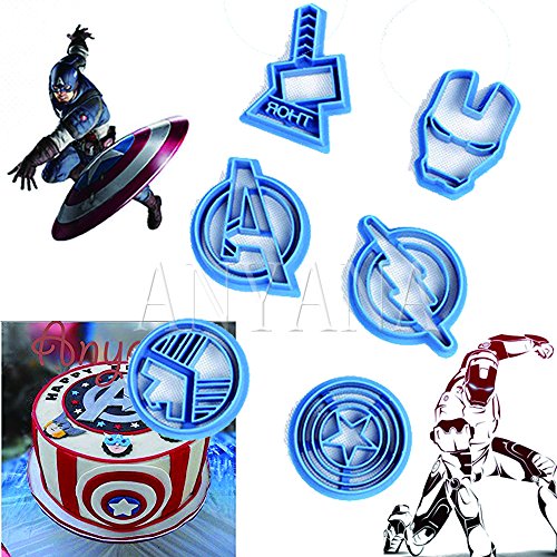 Anyana 6pcs set Superhero biscuit Cutter stamp Cpt Iron Man Avengers Thor Flash Shield cookie bakery