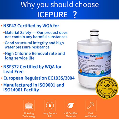 -. Feature : 1. All components NSF 42 certified. / 2. All filters are certified to be free from leaks if properly installed and to function with the latest modifications from the . All components NSF-42 certified. Manufactured in an ISO9001 facility. / 3. Removes chlorine, taste and odor. / 4. IcePure Authorized Certified Product.
