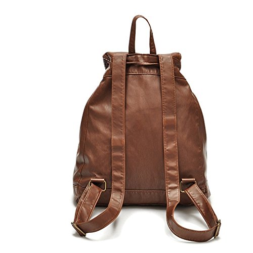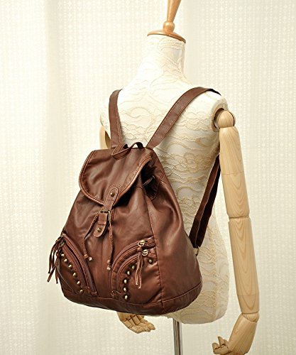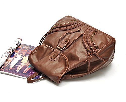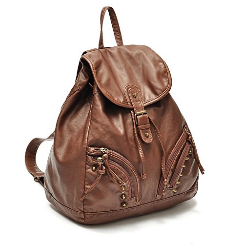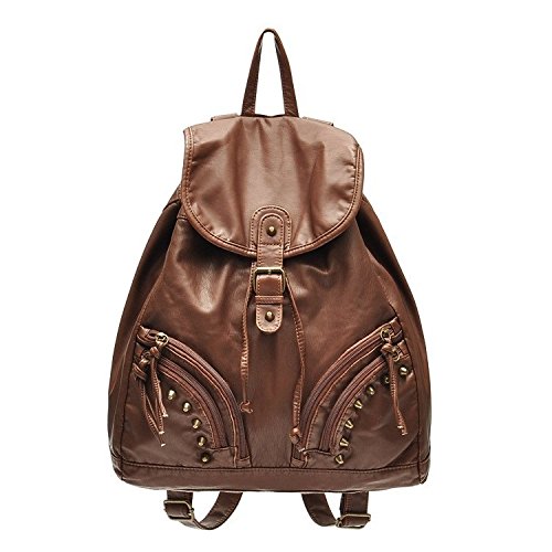 New Wayzon Brown Soft PU Leather Women Backpack with Zipper Rivet Decoration PU Schoolbag Travelling Bag for Girls