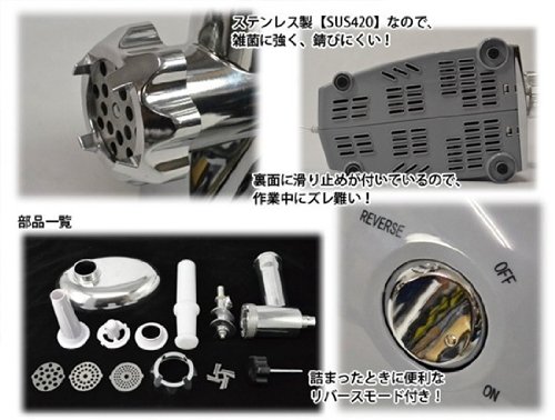 ■ Since three types of plates are attached, the size of mince can be adjusted according to the application from coarse ground to fine grinding.