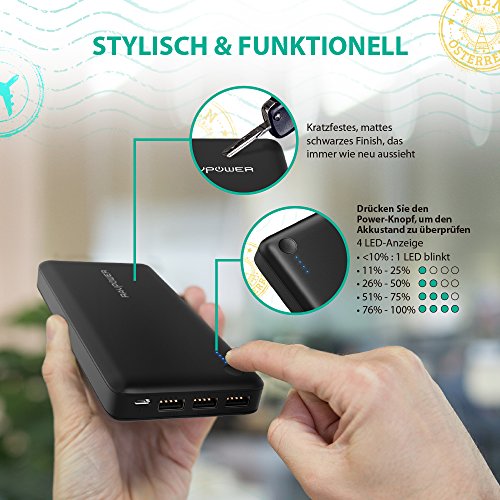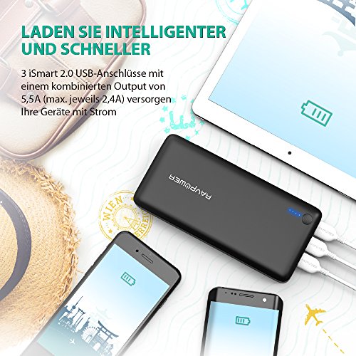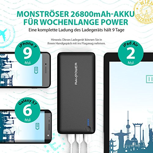 Powerbank RAVPower 26800mAh Externer Akku 5,5A Ausgang iSmart USB Ladegerat fur iphone 8 / X, iPad, HTC, Huawei, Sony, LG weitere Smartphones und Tablet, Schwarz