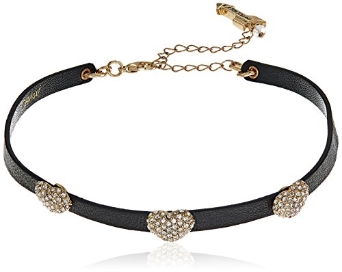 black genuine leather choker with pave crystal accented hearts