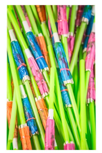 Perfect Stix 8" Neon Green Umbrella Luau and Tropical Drinking Straws ( pack of 48)