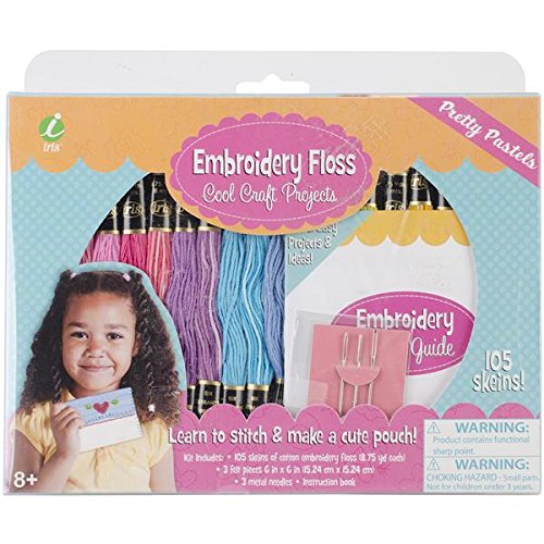 - Kit includes 105 skeins of cotton embroidery floss in assorted colors, 3 piece felts, 3 metal needles and instruction book