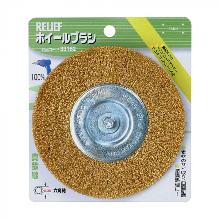 fk094igrjs金属のサビ落とし、塗装はがし、バリ取り、下地研磨、木材のうずくり加工、汚れ落とし、石材のツヤ出しなどにお使いください サイズ Φ100mm 個装サイズ:13×15×6cm 重量 個装重量:146g 素材・材質 真鍮線 仕様 六角軸:6.35mm 線径:0.13mm 製造地 台湾 サビ落としや塗装はがしに 金属のサビ落とし、塗装はがし、バリ取り、下地研磨、木材のうずくり加工、汚れ落とし、石材のツヤ出しなどにお使いください