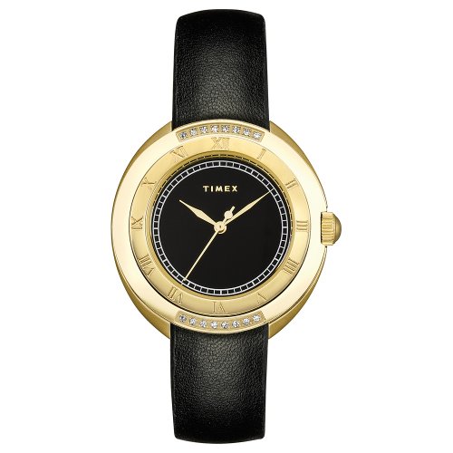 Brand, Seller, or Collection Name:Timex Model number:T2M592 Part Number:T2M592 Item Shape:Oval Dial window material type:Mineral Display Type:Analog Clasp:Buckle Case material:Stainless steel Case diameter:35 millimeters Case Thickness:7 millimeters Band Material:Stainless steel Band length:womens Band width:15 millimeters Band Color:Black Dial color:Black Bezel material:Stainless steel Bezel function:Stationary Special features:Diamond Accent Movement:Quartz Water resistant depth:99 Feet