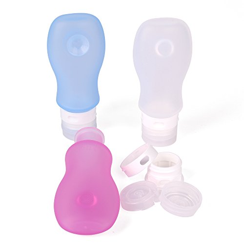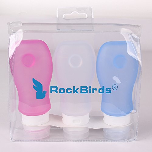 - Feature : RockBirds Silicone Travel Bottle Set, BPA free, Environmentally Friendly, FDA Approved 100% food grade silicone / Set of 3 small bottles, 3oz, perfect for shampoo, save space, easy to carry, pack with zippered clear bag. Refillable, reusable travel size bottles and clear toiletry bag packaging are TSA approved and safe for carry-on/traveling through airplane / Leak-proof design bottle lid, create 3 layers protection to prevent drop, leaks and spills. They are the best storage solution for toiletries, made especially for every smart traveler / Strong suction cup to hang your bottles on your hotel bathroom wall for easy access to your shampoo and body lotions; Large opening makes refills and cleaning easy. You can easily clean them by soaking in warm soapy water or by using the dishwasher / The bottle design with several pre-printed label on the lid for you to identify contents in the bottle. You also have the option to label it yourself using a marker. Available in different colors, you can store and secure your shampoo, conditioner, liquid soap, body wash, makeup, sunscreen, lotion, and more in a cute and colorful container you can easily find and identify