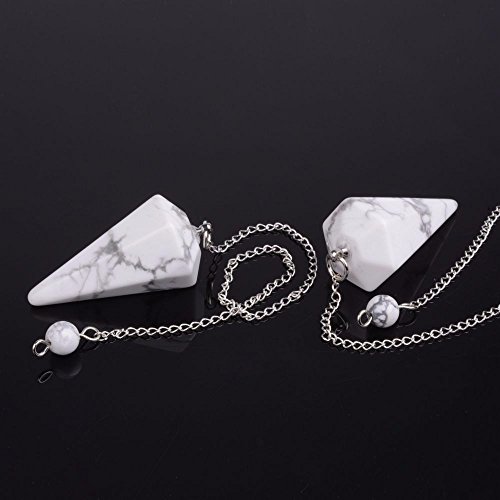 Natural White Howlite Gemstone Rock Crystal Hexagonal Pointed Reiki Chakra Pendant Pendulum