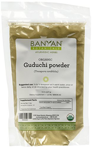 -. Binding : Health and Beauty -. Brand : Banyan Botanicals -. Feature : Bolsters the immune system* / Supports proper function of the liver and kidneys* / Promotes healthy skin and a clear complexion* / Supports digestion and a healthy balance of intestinal flora* / Supports comfortable movement of the joints* -. IsAdultProduct : 0 -. Label : Banyan Botanicals -. LegalDisclaimer : These statements have not been evaluated by the Food and Drug Administration. This product is not intended to diagnose, treat, cure, or prevent any disease -. Manufacturer : Banyan Botanicals -. MPN : 6890 -. PartNumber : 6890 -. ProductGroup : Health and Beauty -. ProductTypeName : HEALTH_PERSONAL_CARE -. Publisher : Banyan Botanicals -. Studio : Banyan Botanicals -. Title : Banyan Botanicals Guduchi Powder - Certified Organic, Tinospora cordifolia - An excellent rejuvenative for vata and pitta that supports overall health and well-being*