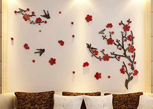 -. Title : 3d Large Plum Blossom Flower Wall Murals for Living Room Bedroom Sofa Backdrop Tv Wall Background, Originality Stickers Gift, Removable Wall Sticker Decor Decal