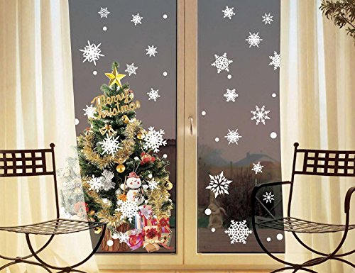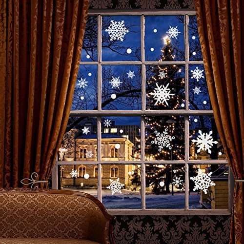 207PCS Christmas Snowflake Window Clings Decal Wall Stickers - Xmas/Holiday/Winter Wonderland White Decorations Ornaments Party Supplies(6 Sheets)