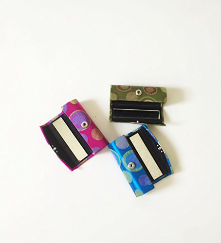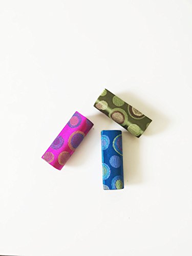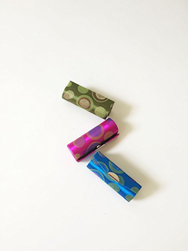 Lipstick Case Holder Box With Mirror 3pcs Rose Pink Green Blue Satin Silky Fabric Polka Dot Brocade Gorgeous Design Gift