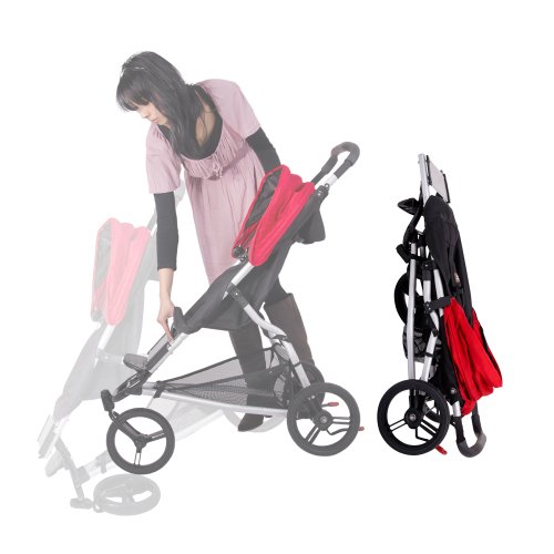 • One-size-fits-all fixed handle height, full swivel front wheel, rear foot brake and lightweight mesh gear tray. Stroller weighs a mere 17 pounds, is 23'' wide, and can accommodate up to 44 pounds