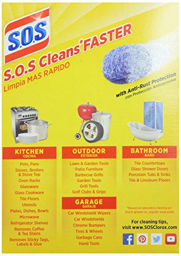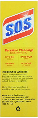 S.O.S Steel Wool Soap Pads contain a powerful combination of steel wool and soap, so you can remove even the most stubborn messes. Use these scrubbers to quickly eliminate baked-on food, grill residue, hard water stains, auto grease and burnt grease. They are perfect for cleaning ovens, broilers, cookie sheets and pots and pans.