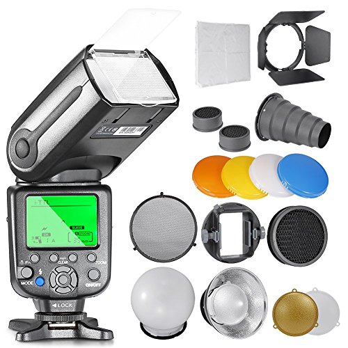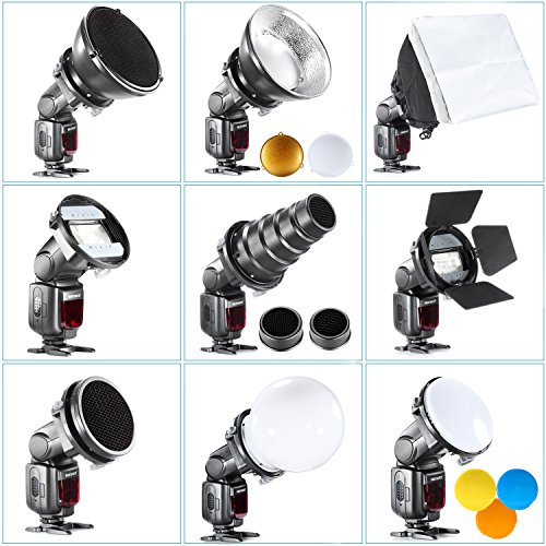 Kits include:(1)NW565 Flash for Nikon +Speedlite Flash Accessories Kit with Barndoor, Snoot,Honeycomb,Standard Reflector, Diffuser Ball,Color Gel(Orange, Blue, White, Yellow),Softbox, Universal Mount Adpater