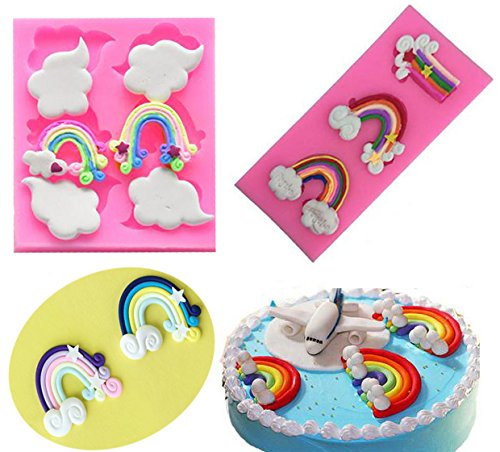 (Set of 2)Rainbow Cloud Silicone Fondant Mold,Chocolate Mold for Sugarcraft,Cake Decoration,Candy Mold,Cupcake Topper, Polymer Clay,Crafting Projects