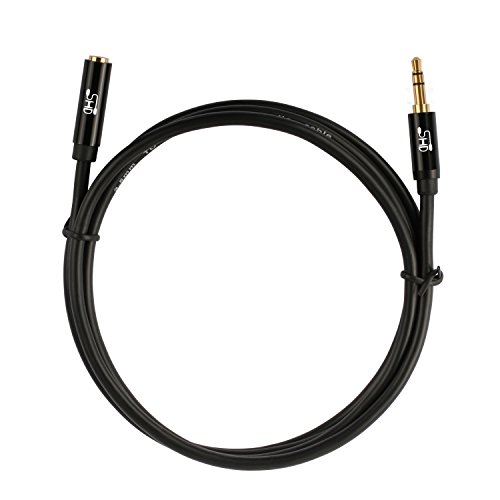 Super HD 3.5mm Aux Stereo Audio Extension Cable Male to Female Type 24K Gold Plated Step Down Design Metal Connectors with High Purity OFC Conductor White and Black-4Feet-2Pack