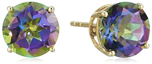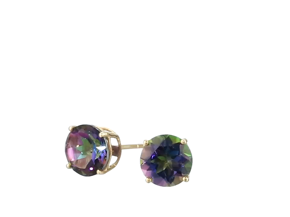 10k Yellow Gold Mystic Topaz Round Stud Earrings