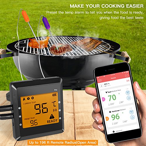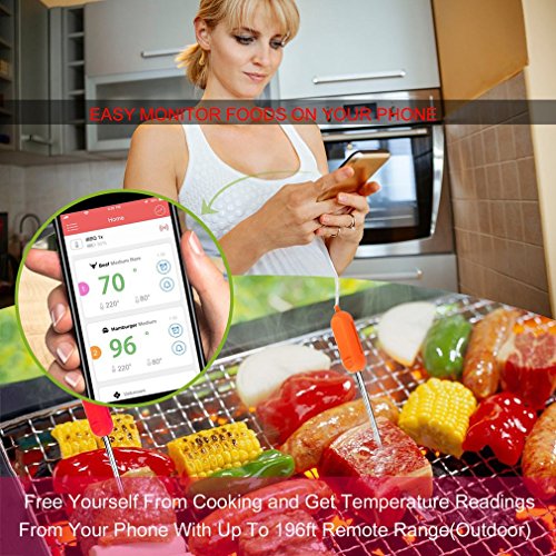 Studio : OUTAD Publisher : OUTAD Product Description OUTAD Digital Meat Thermometer, Your Personal Kitchen Helper The OUTAD Digital Wireless Thermometer has 6 Probes that allows you to accurately cook by monitoring both your Meat and Oven/Smoker/Grill temp remotely from 196 feet away. No more hassle of getting up and sitting back down to check on your meat. Just await the device/phone alarm and the delicious food is all ready