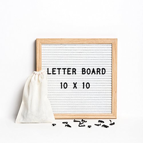 Sale! Letter Board - Felt Letter Board White Felt 10 x 10 Inch Oak Frame - Changeable Letter Board w/ 290 Black Letters - Letter Board