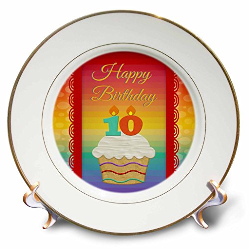 3D Rose Cupcake with Number Candles-10 Years Old Birthday Porcelain Plate, 8"