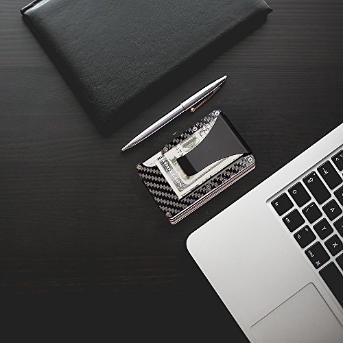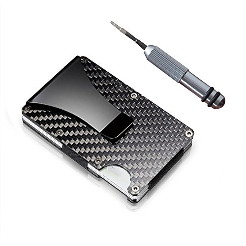 -. Feature : Minimalist Wallet, Slim Wallet & RFID Blocking Front Pocket Wallet, Aluminum Wallet for Men And Women / SLIM & ULTRA LIGHT: Let's get rid of bloated traditional wallet. Observably thinner than traditional wallets, easy to holds up to 12 cards. / EXCELLENT QUALITY: Made of premium carbon fiber outside, Anti-corrosion, Durable and Wear. Unique texture gives you a unique touch feeling. / MONEY CLIP & ELASTIC BAND: The classical money clip is made of sP.R.Ing steel, it can be used to hold cash handy. Flexible elastic webbing greatly improved the card holding capacity, it's just perfect for card carrier. / STYLISH AND CONVENIENT DESIGN: The V shape mouth is convenient for you to put your various cards into it. The C shape mouth on the opposite helps you to pull out cards easily. which is not only a good way to protect your wallet, but also a decent gift for yourself or someone you love.