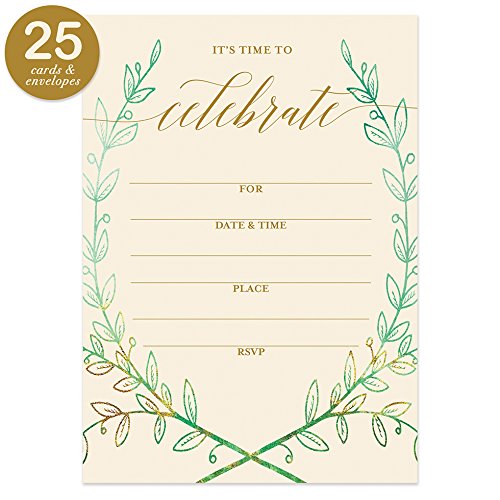 25 Rustic Laurels Invitations with Envelopes ( Pack of 25 ) Any Occasion Large 5x7" Fill In Birthday, Anniversary, Retirement, Housewarming, Bridal Shower, Excellent Value Party Invites VI0049B