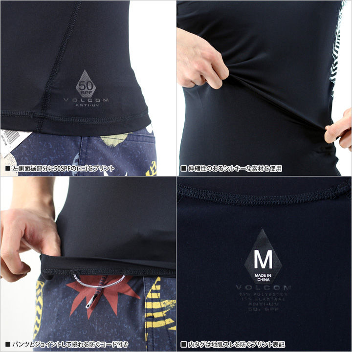 滑らかな生地で伸縮性も十分兼ね備えたライクラ素材を使用し、UVカット50+で機能面も充実。