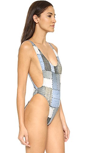 A photoreal patchwork print lends playful detail to this Norma Kamali one-piece swimsuit. Scoop back. Lined.