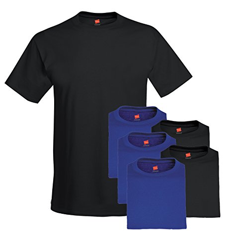 Hanes Men's 6-Pack Crew T-Shirt, 3 Black / 3 Deep Royal, Medium